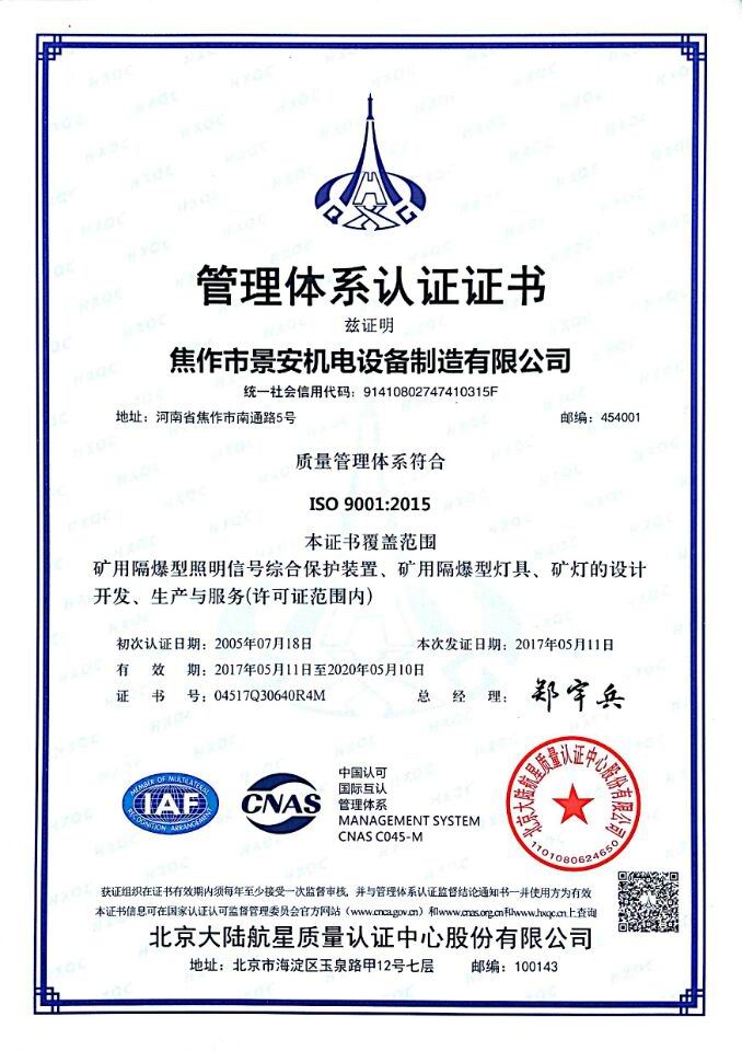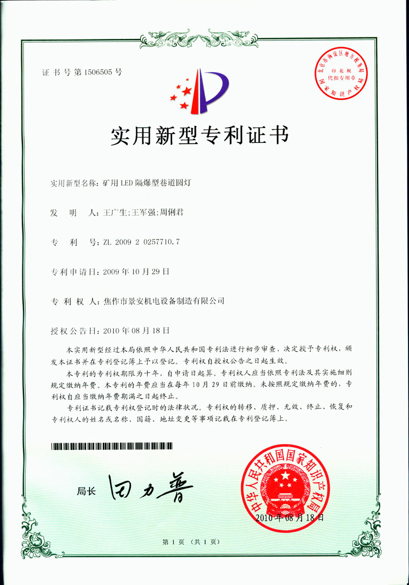 焦作景安公司始終堅持“以科技為先導,以市場為導向”的發(fā)展戰(zhàn)略,不斷進行新產(chǎn)品的研制和開發(fā),在國家“六五”到“九五”期間,承擔和參與了國家多項科技攻關(guān)項目,產(chǎn)品的技術(shù)和質(zhì)量一直處于全國同行業(yè)領(lǐng)先位置。并被中國電器工業(yè)協(xié)會評定為“質(zhì)量可信產(chǎn)品”。特別是在礦用防爆燈領(lǐng)域,礦用隔爆型半導體(LED)照明燈具,2008年列入國家火炬計劃,獲2009年河南省工業(yè)和信息化廳的科技成果二等獎,并擁有多項國家專利。 |